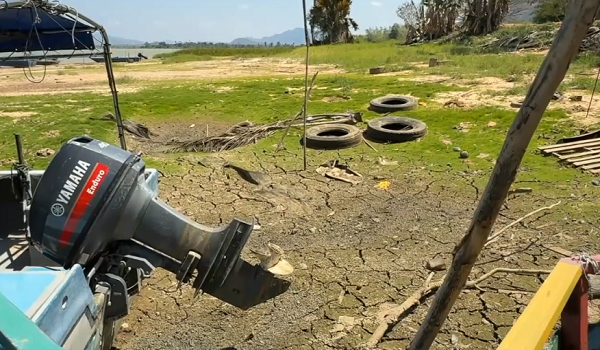 Ketika ini,paras air di Empangan Timah Tasoh semakin menyusut ke tahap amaran.